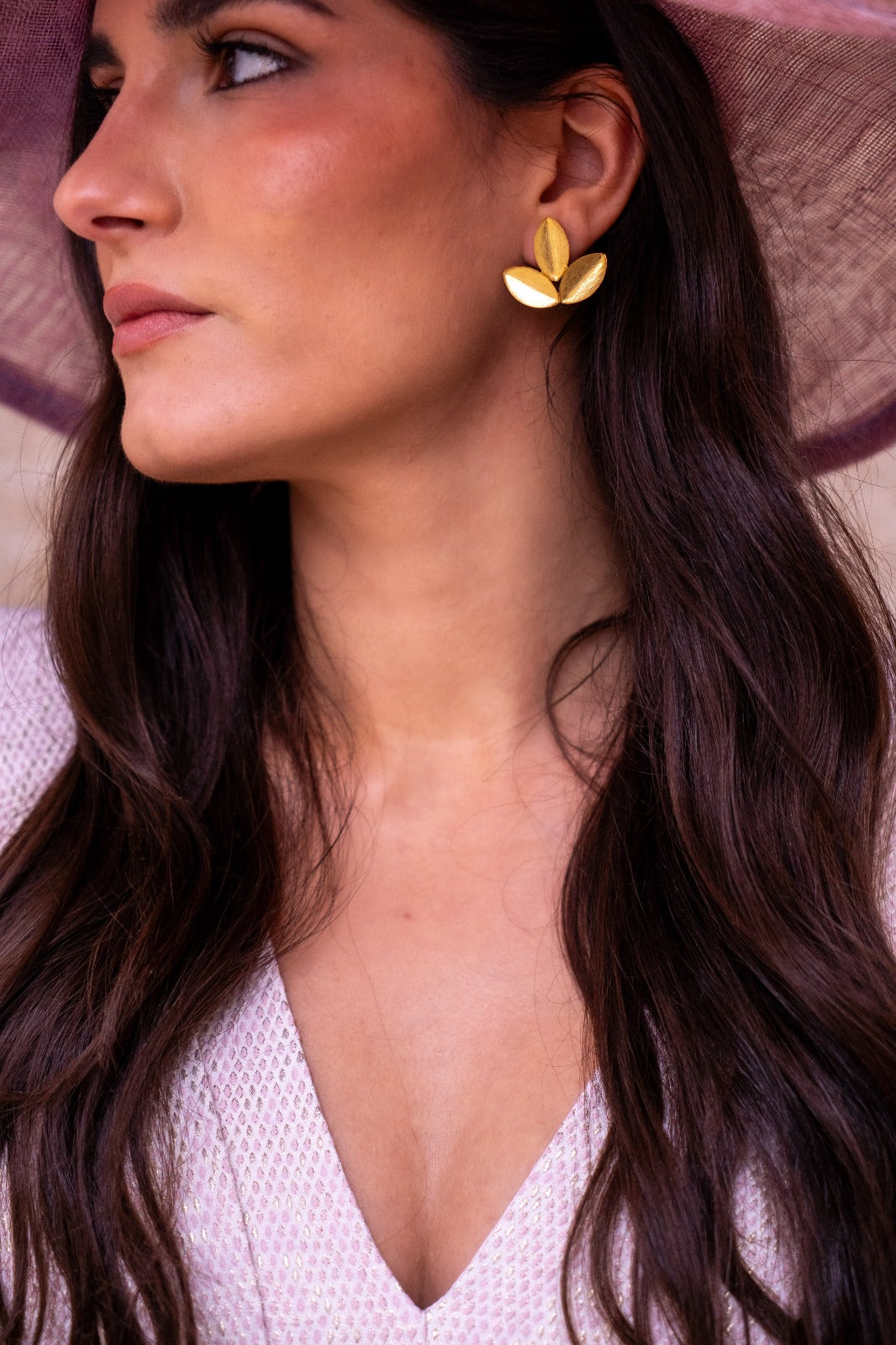 Three simple and flattering leaves make these earrings a perfect choice. Ultra-lightweight. Screw-back closure.