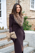 Stole in natural hair, with a hook at the end of the neck for fastening, in camel color.