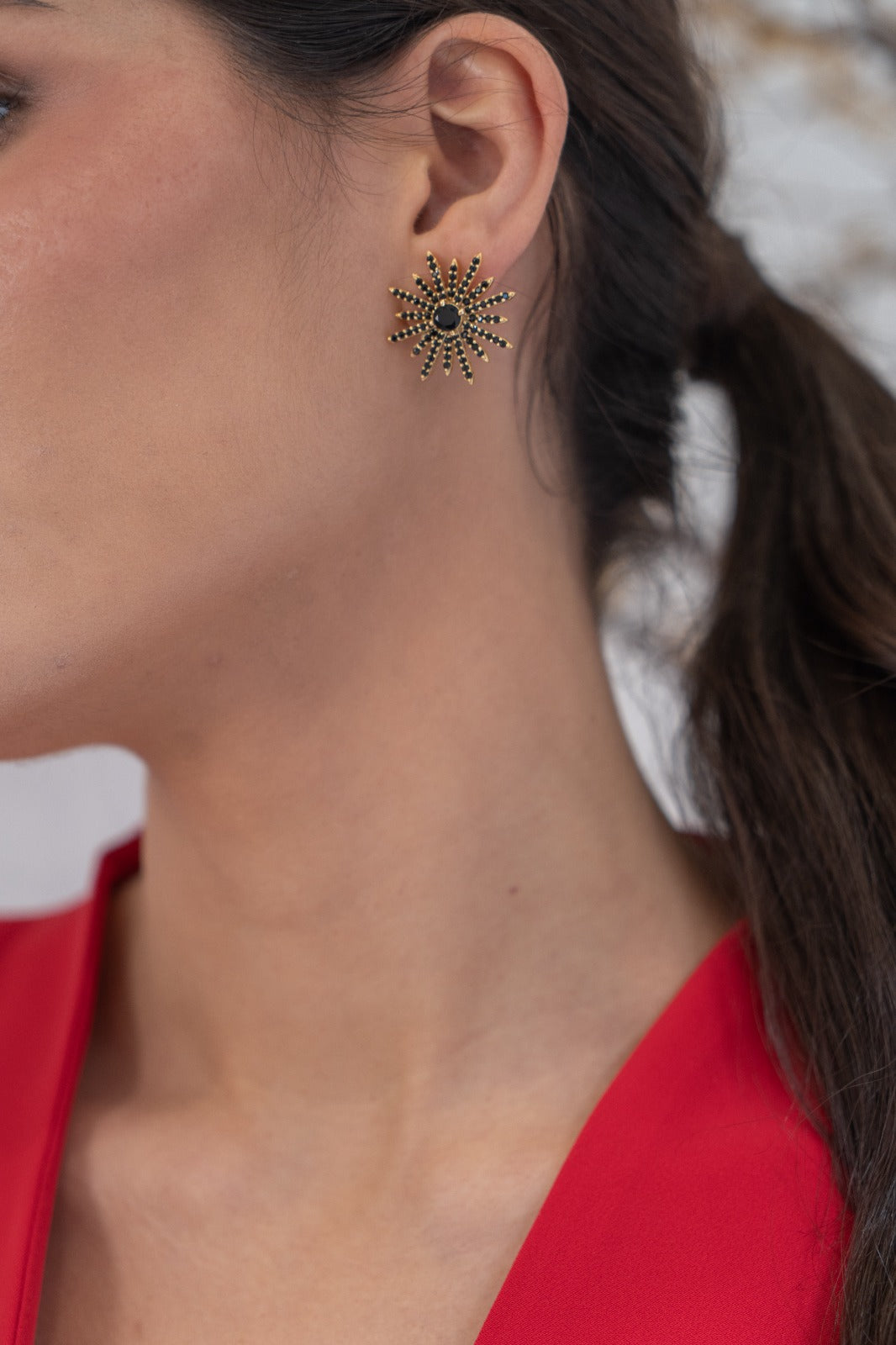 - Material: Gold-plated brass with cubic zirconia.