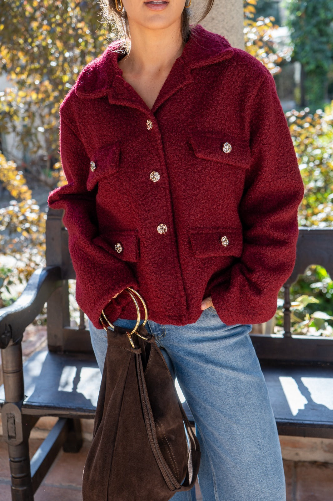 Bolso en piel, cierre con imán, asa corta con argollas doradas y correa larga, en color marrón.
