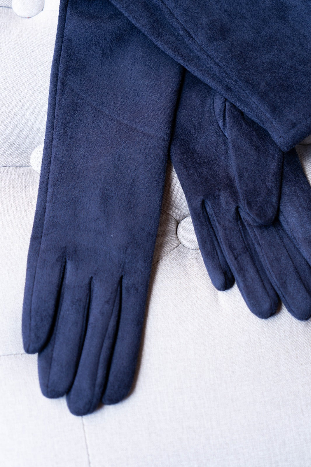 Guantes largos de antelina, elásticos se adaptan perfectamente y quedan ajustados. Color azul.