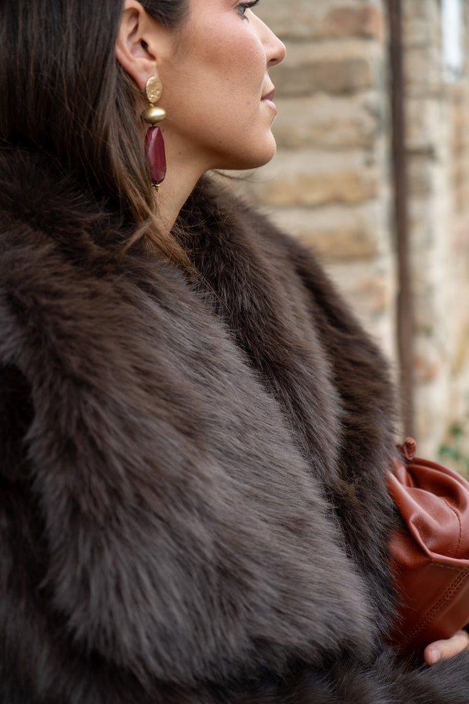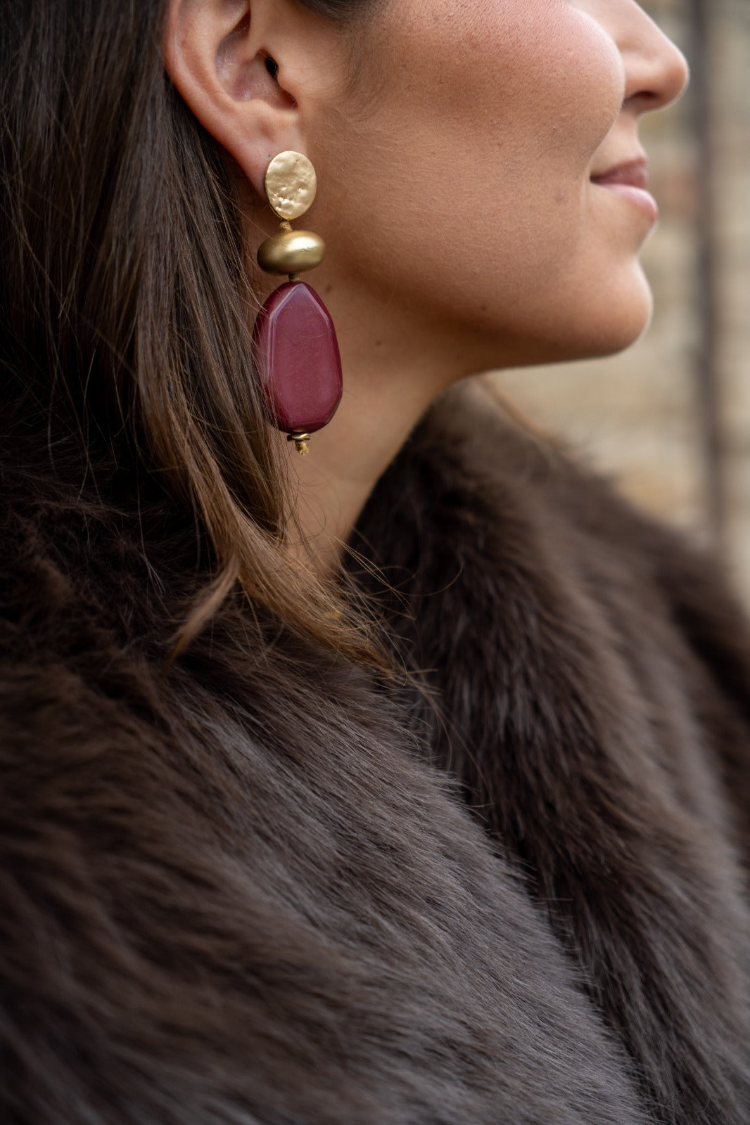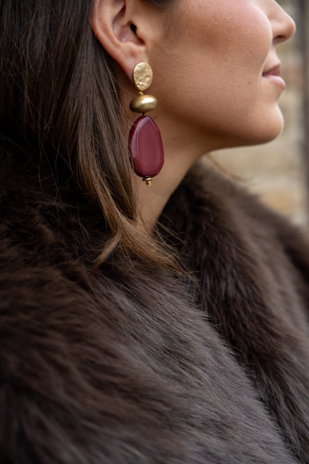 Pendientes cierre con tuerca, en color dorado con burdeos.