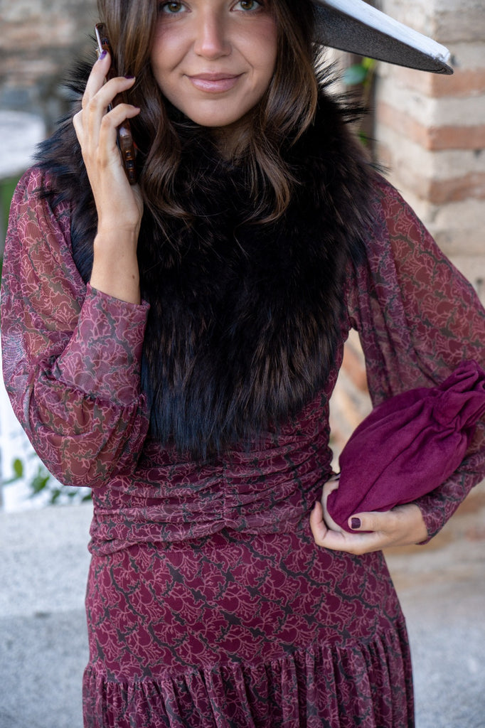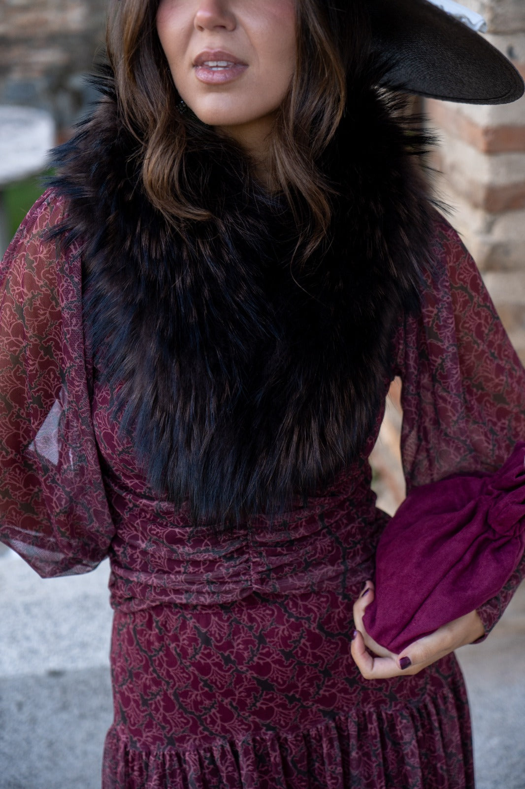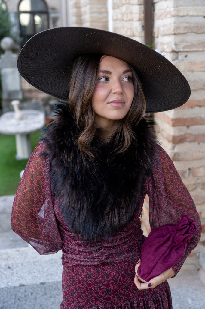 Estola en pelo natural, enganche al final del cuello para sujeción, en color negro.