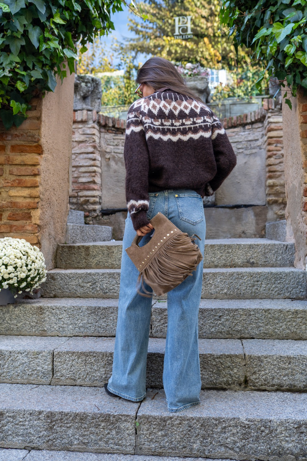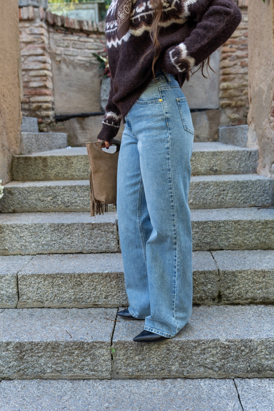 Pantalón vaquero tiro alto, bolsillos trasero y bolsillos delanteros, recto. En color vaquero.