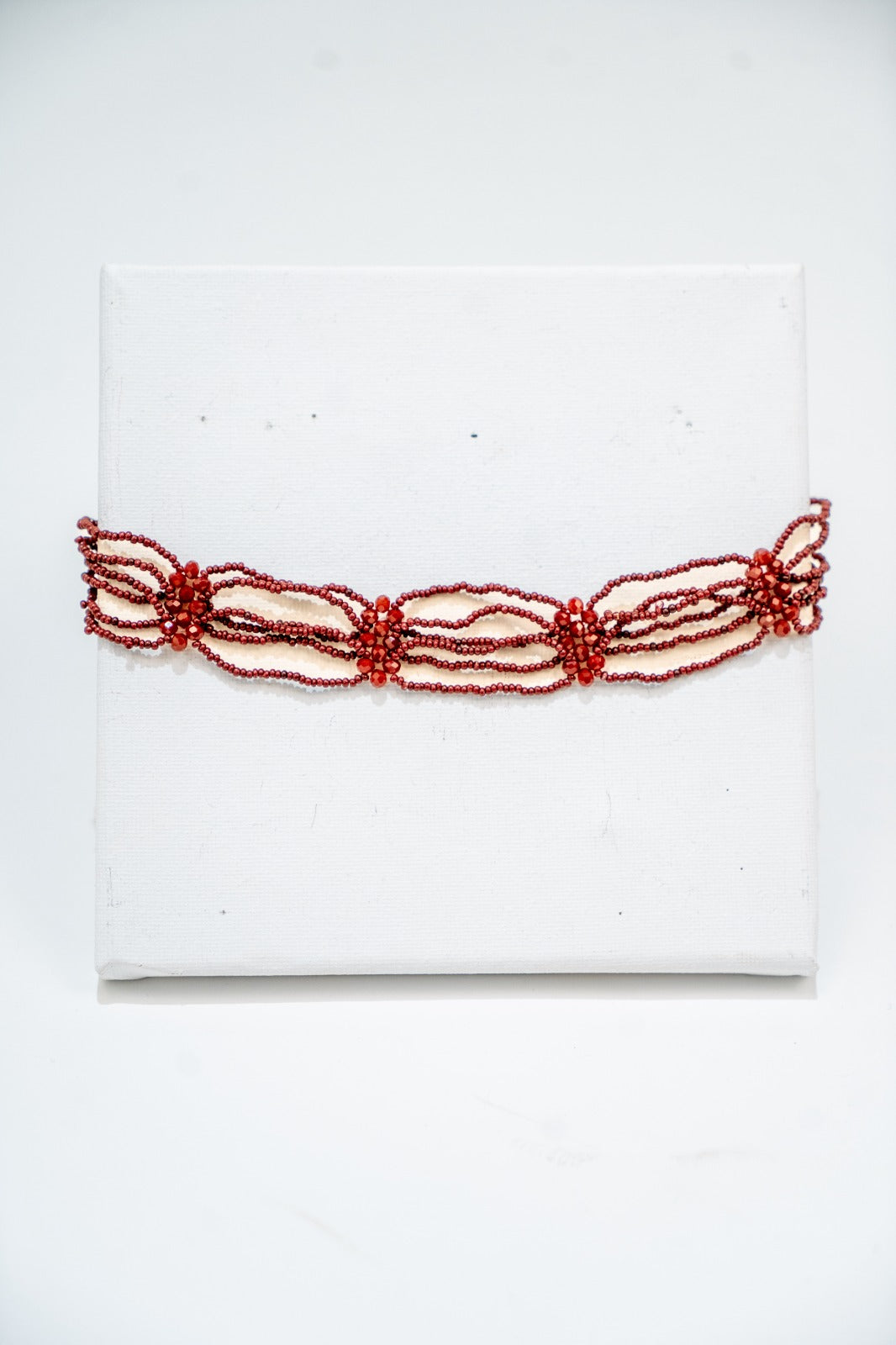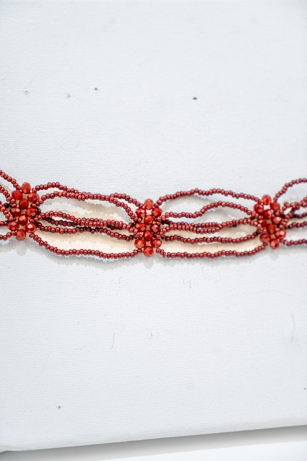Choker formado por hileras con detalles de piedras, en color burdeos.