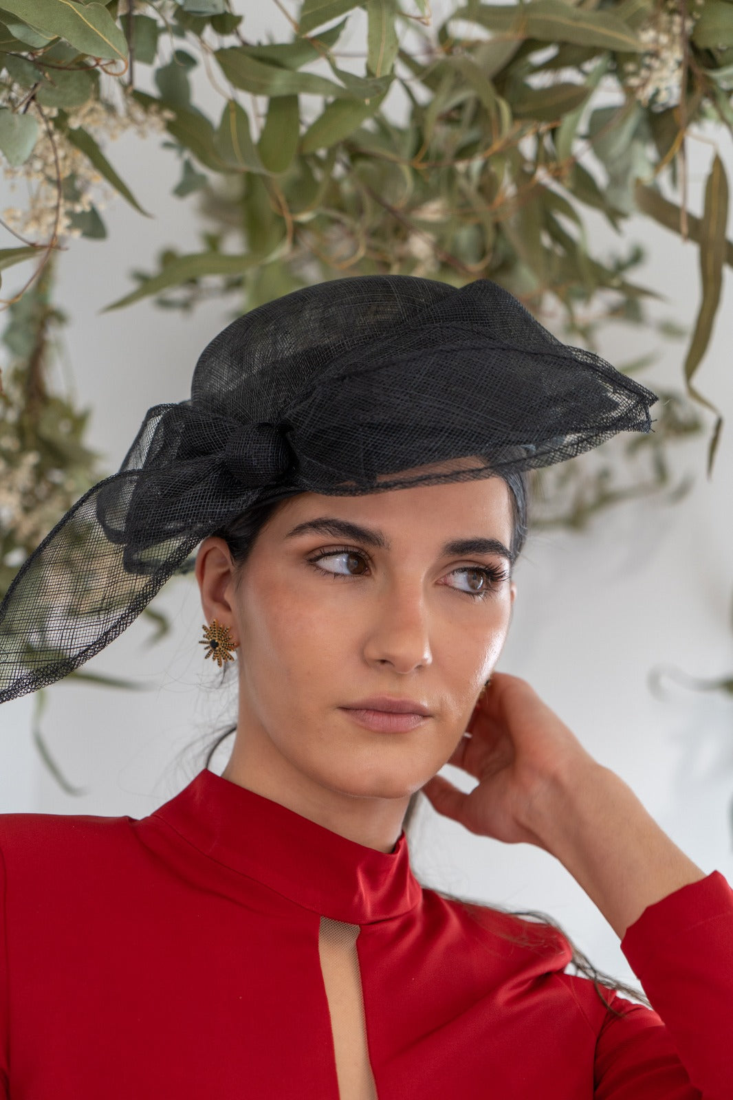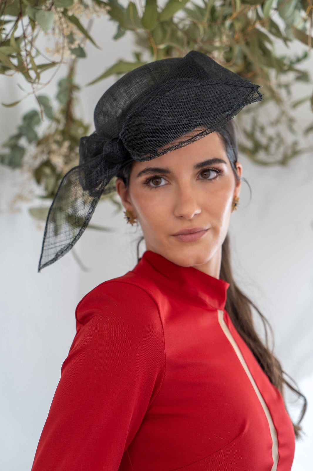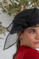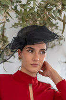 Sombrero en sinamay , con detalle negro, lazo en un lado.