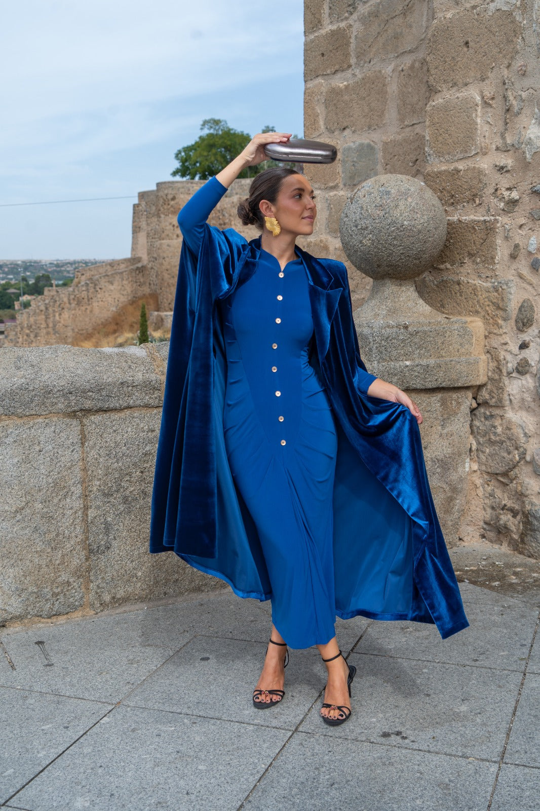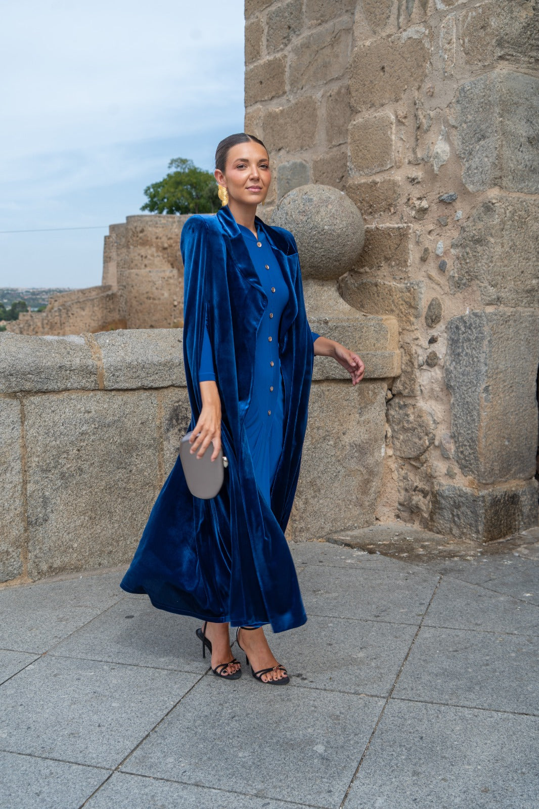 Velvet cape with collar and armholes. Blue.