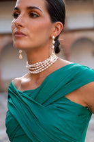 Choker consisting of five perfectly aligned rows of pearls that elegantly embrace the neck. In white.
