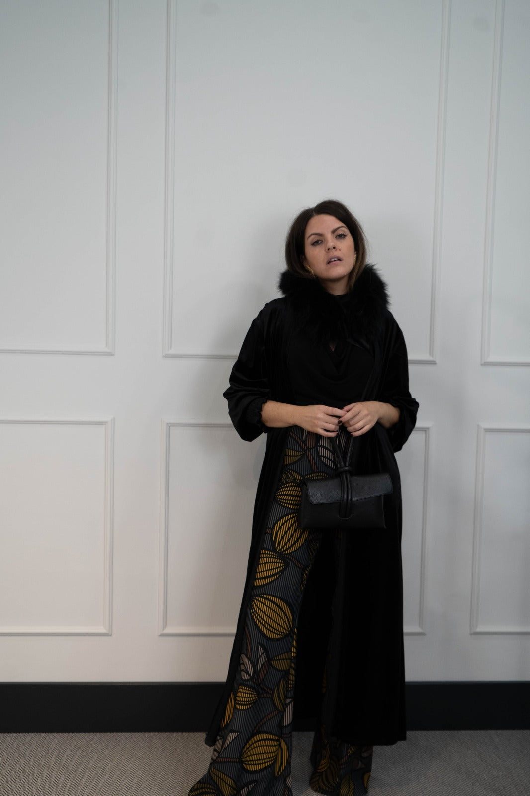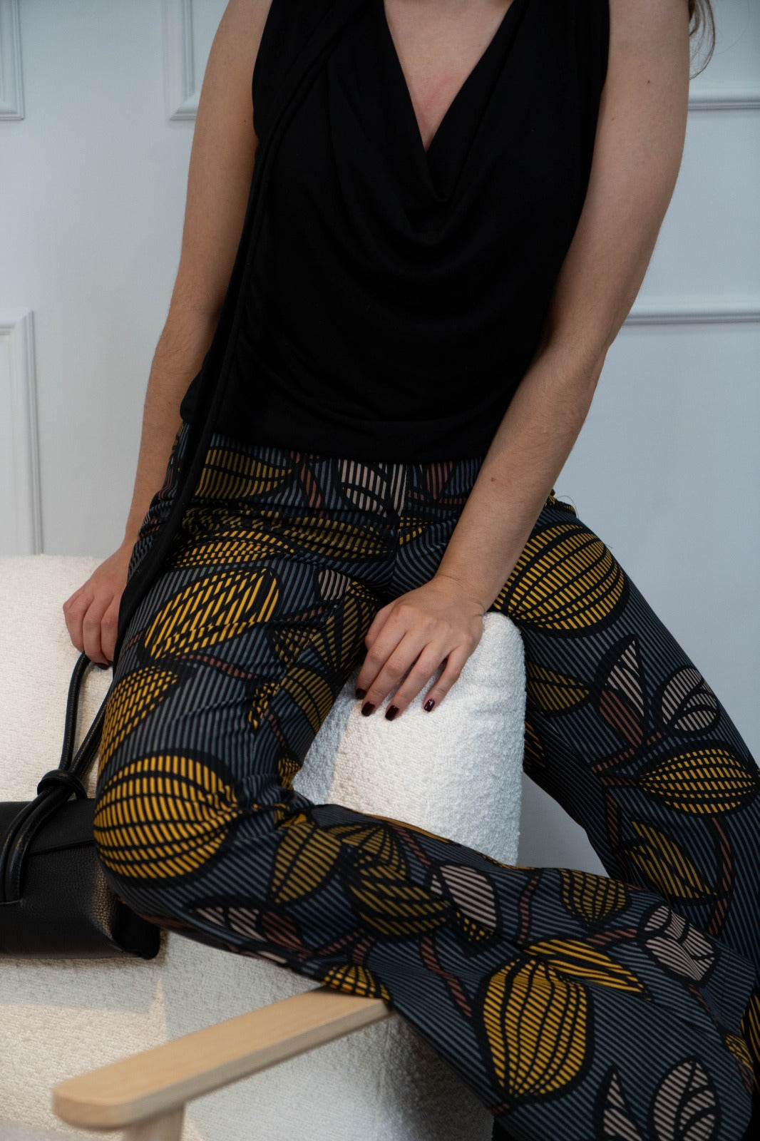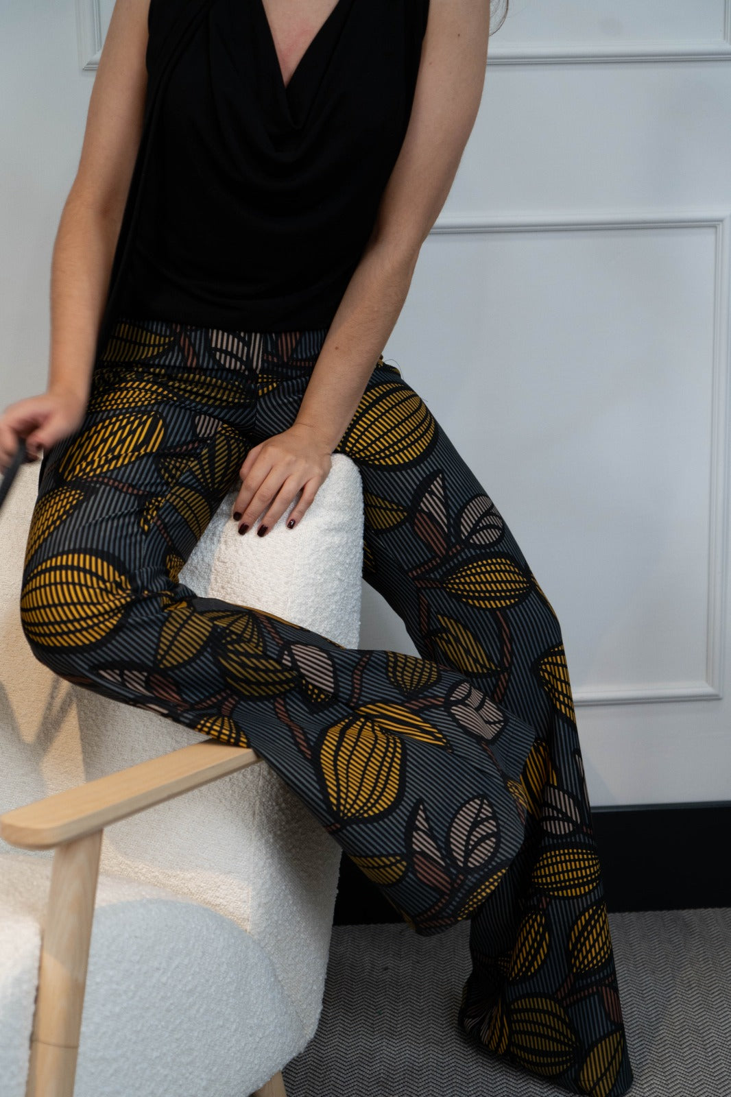 Trousers, waistband with zipper on one side, in printed colors.